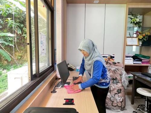 วันที่ 3 พฤศจิกายน 2568 สำนักงานพัฒนาชุมชนอำเภอมายอ โดยนายนิสิต สะมาลา พัฒนาการอำเภอมายอ มอบหมายให้เจ้าหน้าที่พัฒนาชุมชน ดำเนินกิจกรรมด้านการรักษาสิ่งแวดล้อมในสถานที่ทำงาน ตามหลัก 5 ส ดังนี้