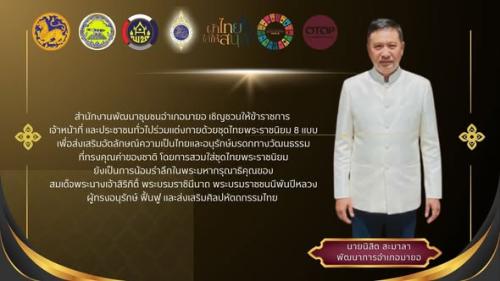 เชิญชวนให้ข้าราชการ เจ้าหน้าที่ และประชาชนทั่วไปร่วมแต่งกายด้วยชุดไทยพระราชนิยม 8 แบบ
