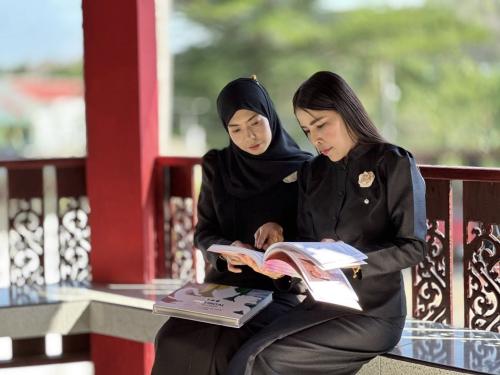 นายดนุช นาคสง่า นายอำเภอมายอ พร้อมด้วยนายนิสิต สะมาลา พัฒนาการอำเภอมายอ ปลัดอำเภอ เจ้าหน้าที่พัฒนาชุมชน และเครือข่าย OTOP อำเภอมายอ